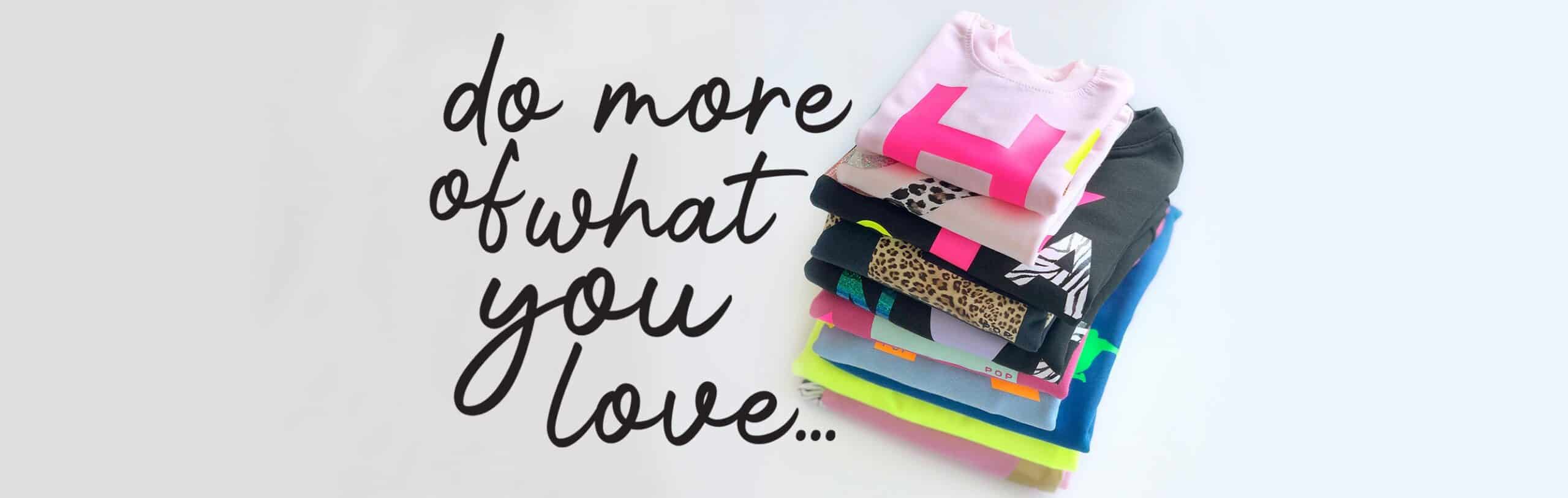 Al snel volgden er ook sweaters en t-shirts. En niet veel later puilde hun garderobe, maar ook die van man en kids, uit van de uitbundige collectie handbedrukte items in alle kleuren van de regenboog. Dit begon ook anderen op te vallen (hoe kan het ook anders met al die popping kleuren) en de aanvragen voor gepersonaliseerde items begonnen binnen te stromen.
