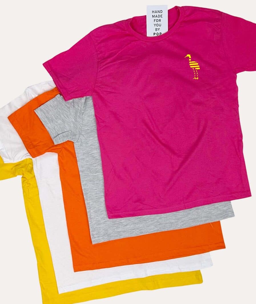 Soepelvallend t-shirt met onze iconische vogel op je borst en typografische Vondelschool print op je rug. Kies zelf de kleur t-shirt en de kleur van het huisje om ‘m zo nog specialer te maken!