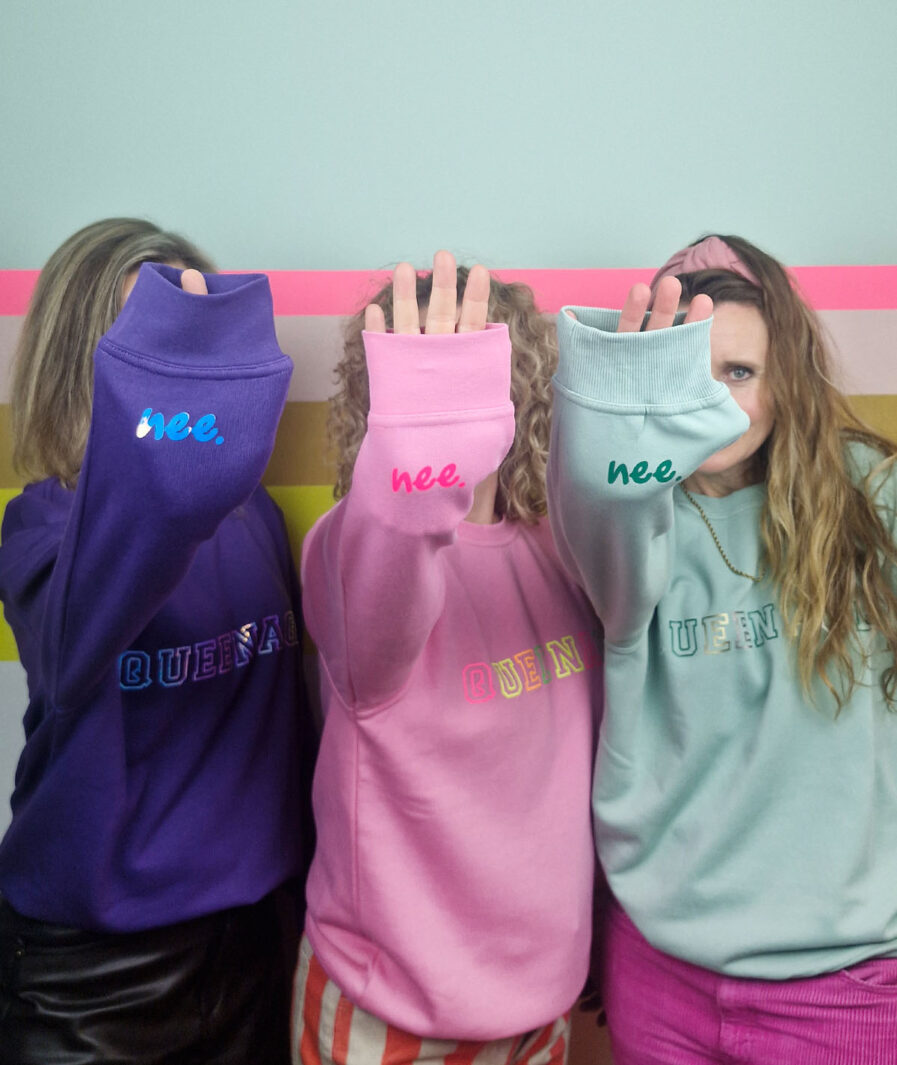 Ben jij boven de 40? Of voel je je boven de 40? Dan ben je officieel een queenager. Een term die je met trots mag dragen. Welkom in de tijd waarin bijzaken je minder gaan schelen en je gemakkelijker voor jezelf gaat kiezen. Toch? Een belangrijk woord dat je als queenager moet kennen is “nee”. Vind je dit moeilijk? Deze trui heeft daar dé oplossing voor: een subtiel spiekbriefje op de mouw met “nee”. Het perfecte cadeau voor jezelf of iemand anders!