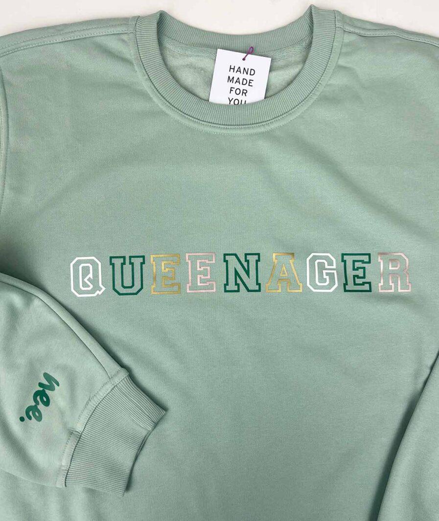 Ben jij boven de 40? Of voel je je boven de 40? Dan ben je officieel een queenager. Een term die je met trots mag dragen. Welkom in de tijd waarin bijzaken je minder gaan schelen en je gemakkelijker voor jezelf gaat kiezen. Toch? Een belangrijk woord dat je als queenager moet kennen is “nee”. Vind je dit moeilijk? Deze trui heeft daar dé oplossing voor: een subtiel spiekbriefje op de mouw met “nee”. Het perfecte cadeau voor jezelf of iemand anders!