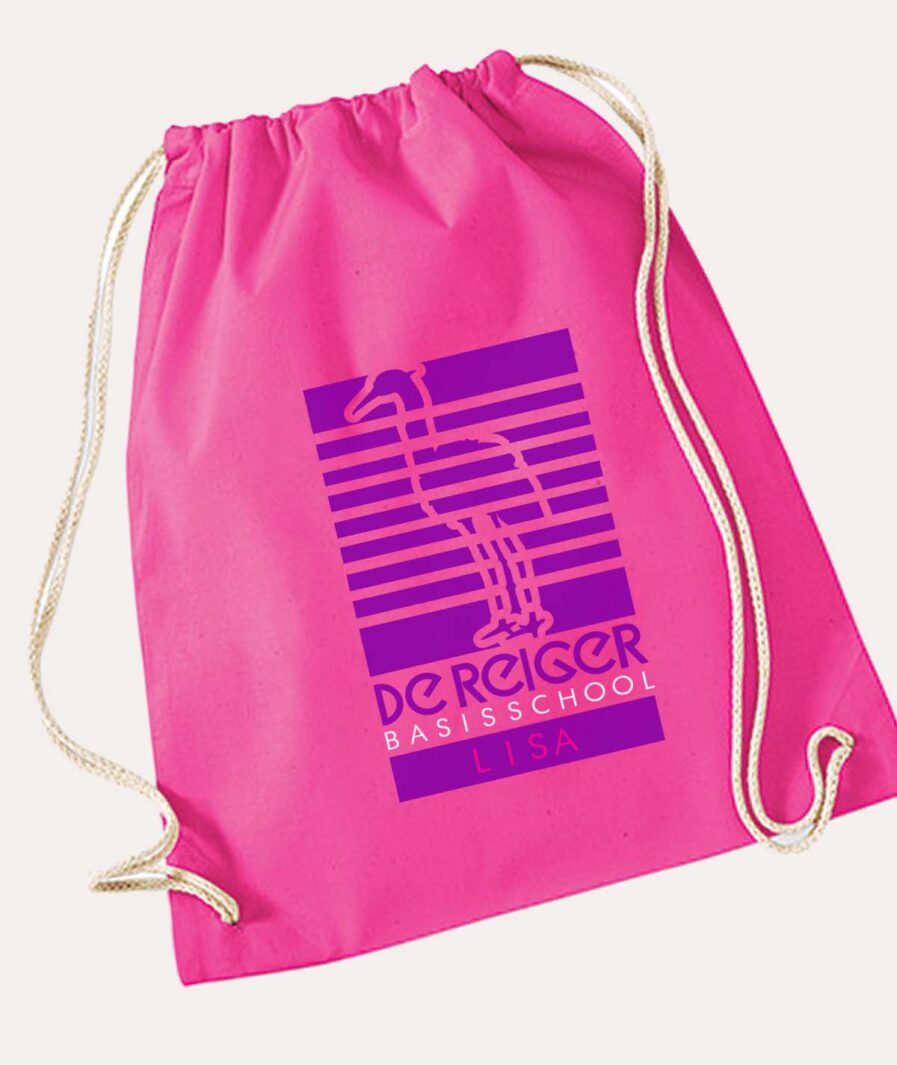 De Reiger gym rugzak met je naam erop… Leuk en super handig! Kies zelf je kleur rugzakje en de accentkleur, vul je naam in en maak ‘m zo extra speciaal!