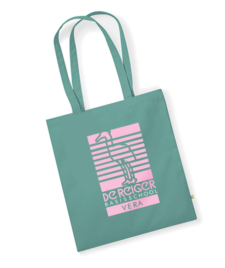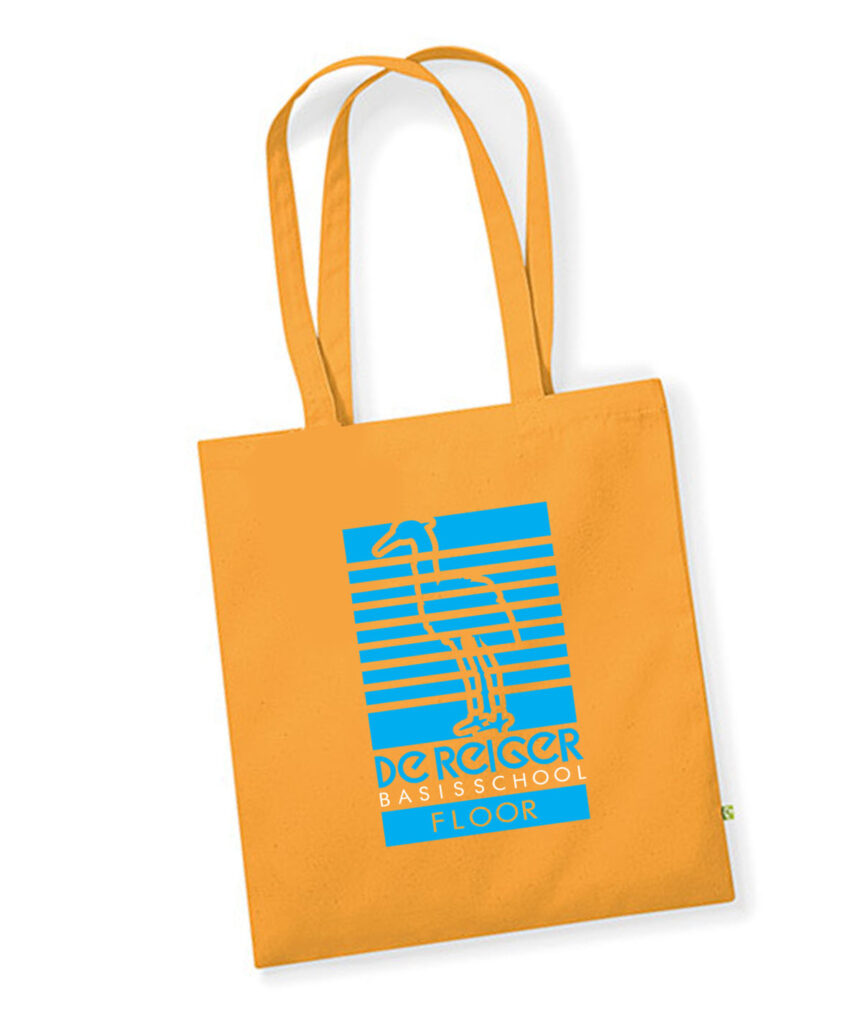Stevige katoenen shopper met grote De Reiger print + je naam in één kleur. Kies zelf je favoriete kleur tas én de opdruk en maak ‘m zo nog meer van jou!