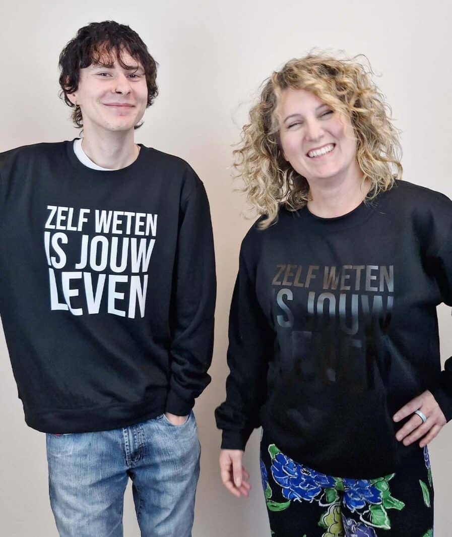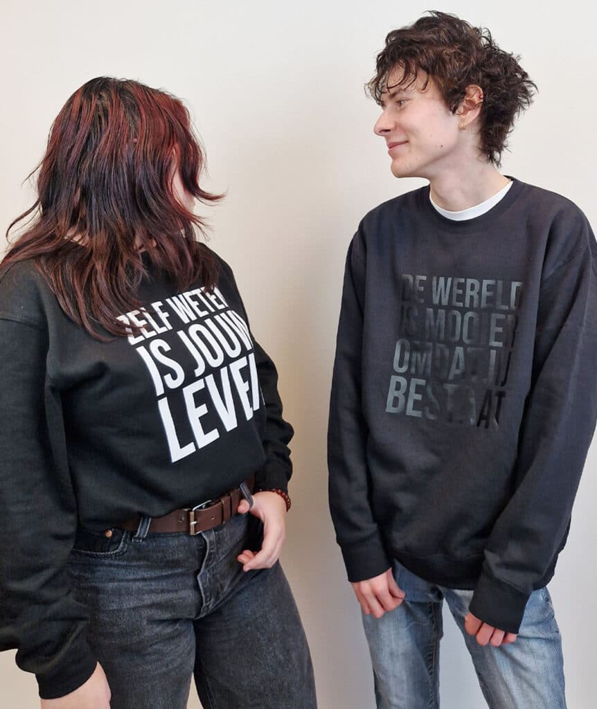 Herken jij dit? “De wereld is mooier omdat jij bestaat. Misschien op een afstand want… ik ben toch al overprikkeld.” Dan zijn deze sweaters iets voor jou. Zelfde boodschap, minder prikkels. En heel zacht, zoals je van ons gewend bent.