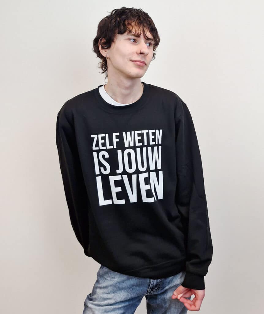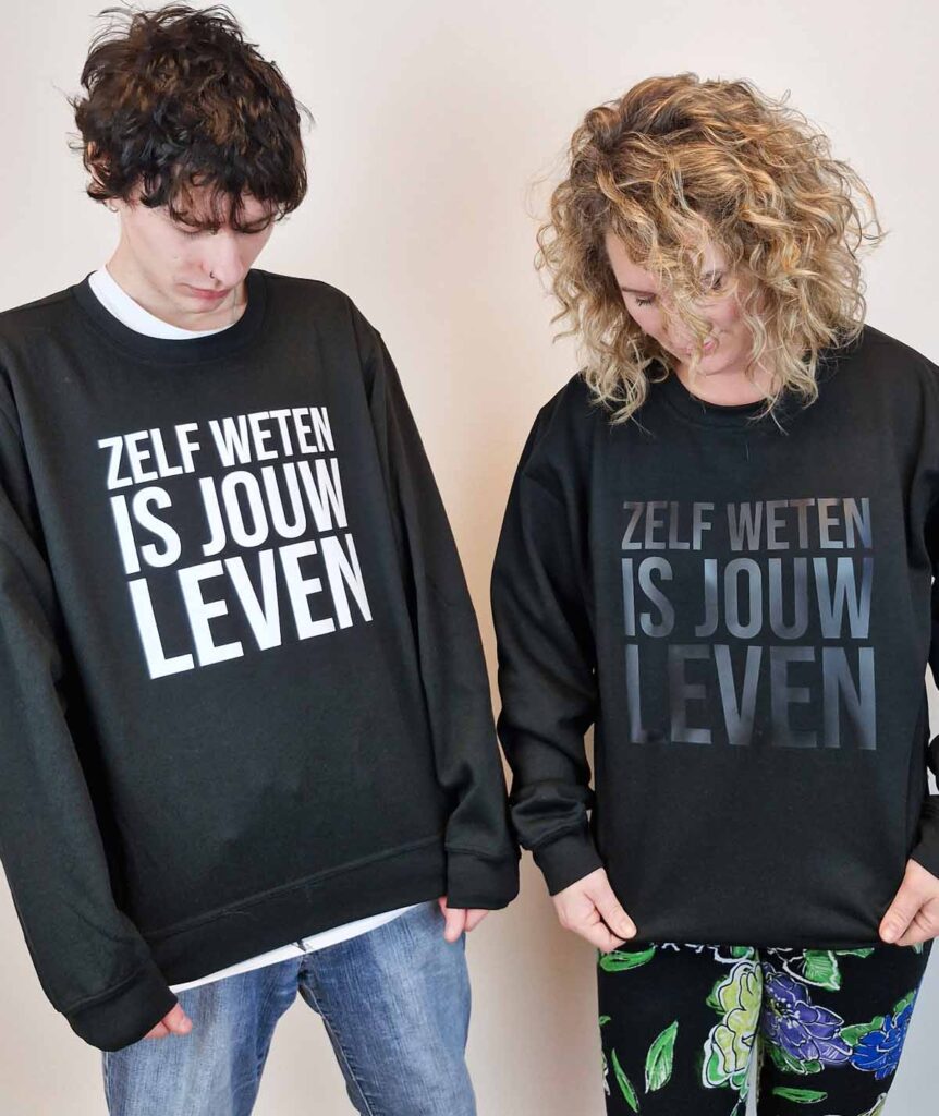En… wist je dat je al onze t-shirts en sweaters in zwart op zwart kunt bestellen?