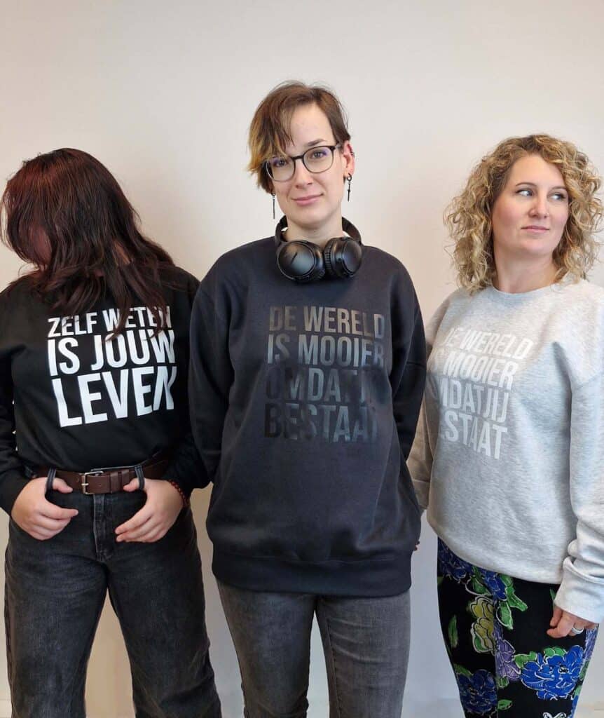 Herken jij dit? “De wereld is mooier omdat jij bestaat. Misschien op een afstand want… ik ben toch al overprikkeld.” Dan zijn deze sweaters iets voor jou. Zelfde boodschap, minder prikkels. En heel zacht, zoals je van ons gewend bent.